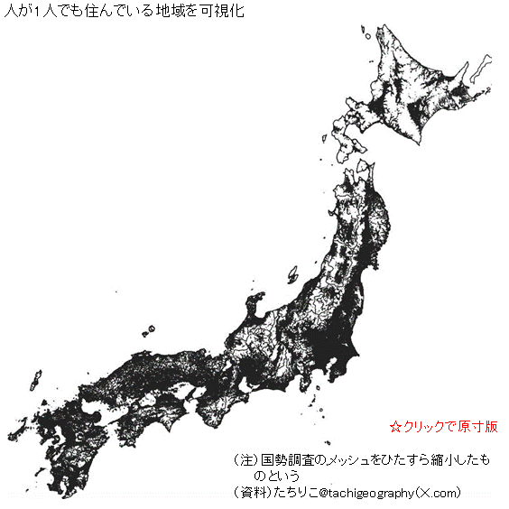 日本国内の人口分布(メッシュ地図)