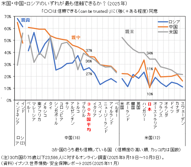 米国・中国・ロシアのいずれが最も信頼できるか? |